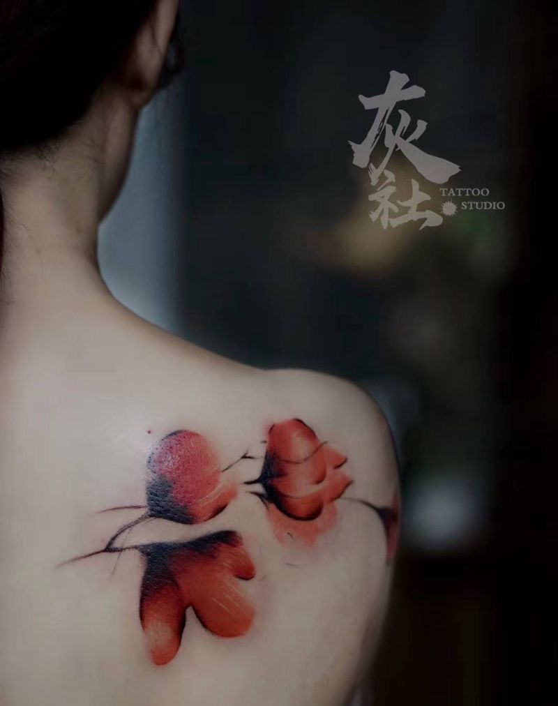 当前位置: 首页 >内蒙古呼和浩特市纹身店-灰社纹身工作室纹身图案>花纹身图片_肩部水彩纹身图案