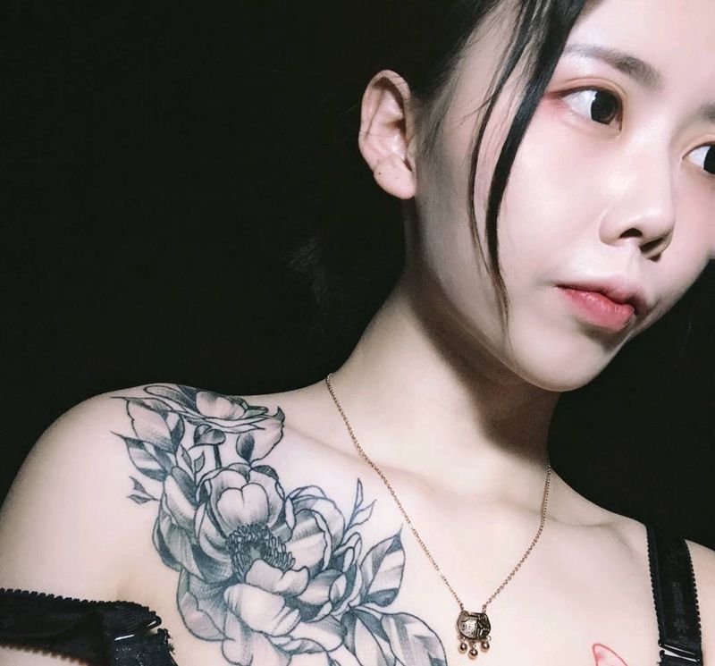 • 女性大花胸纹身_43张霸气漂亮的女性大花胸纹身图案作品