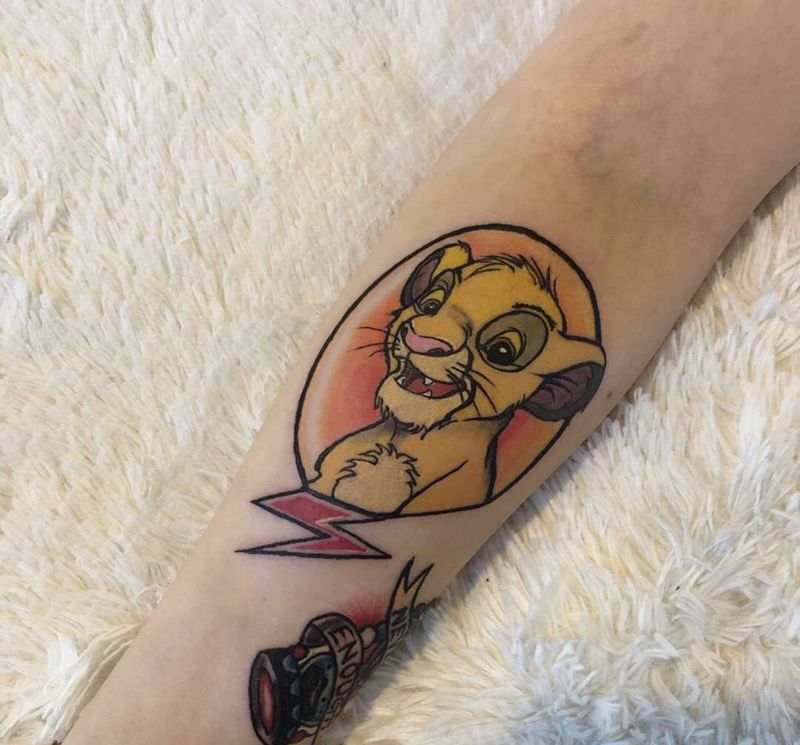 女生小臂狮子王 辛巴纹身图片_手臂New School纹身图案