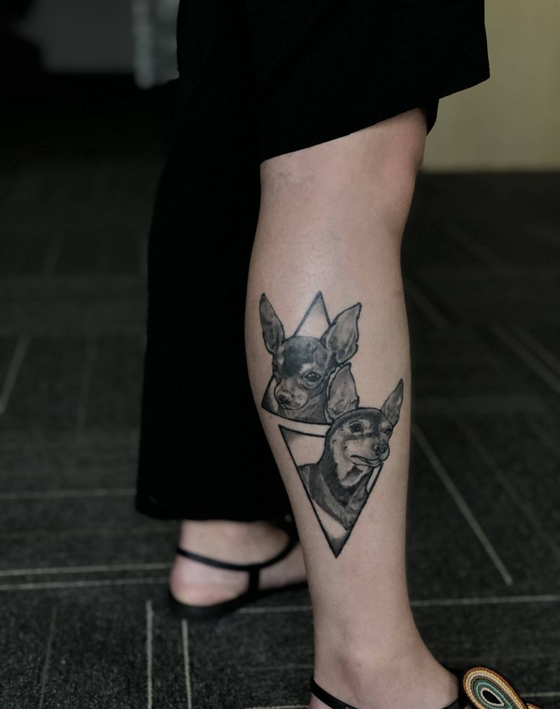 女生小腿宠物纹身图片_腿部欧美写实New School纹身图案