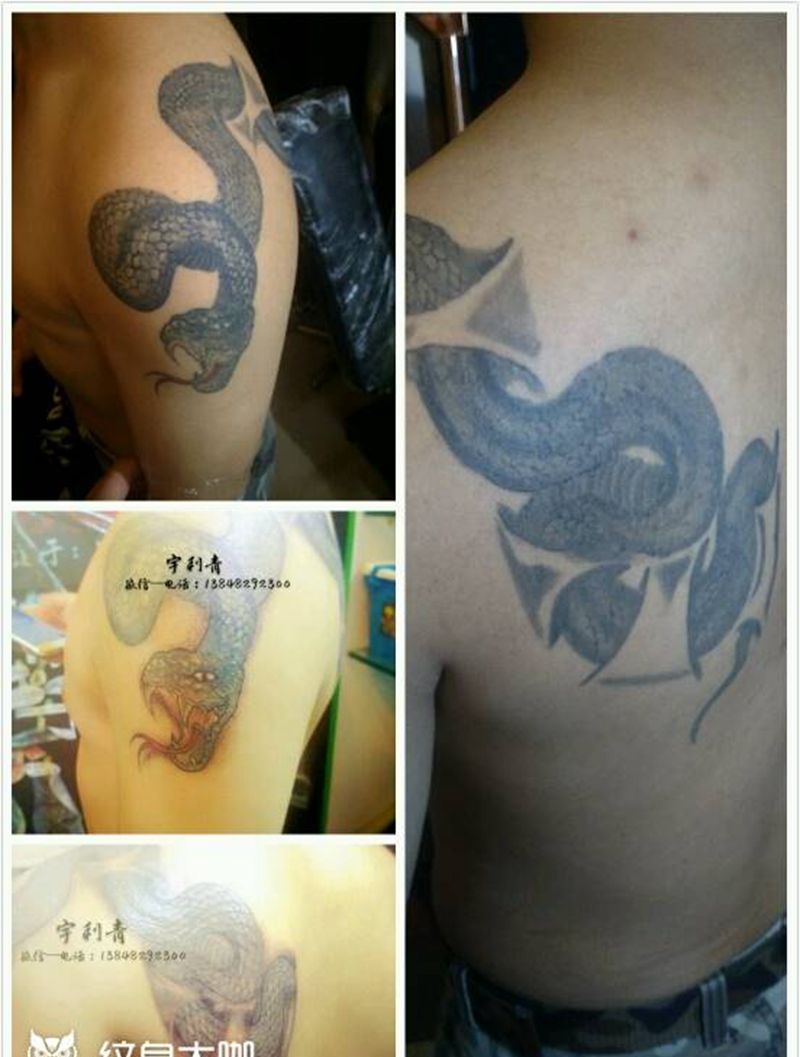 老蛇修改纹身图片_肩部动物无痛纹身图案