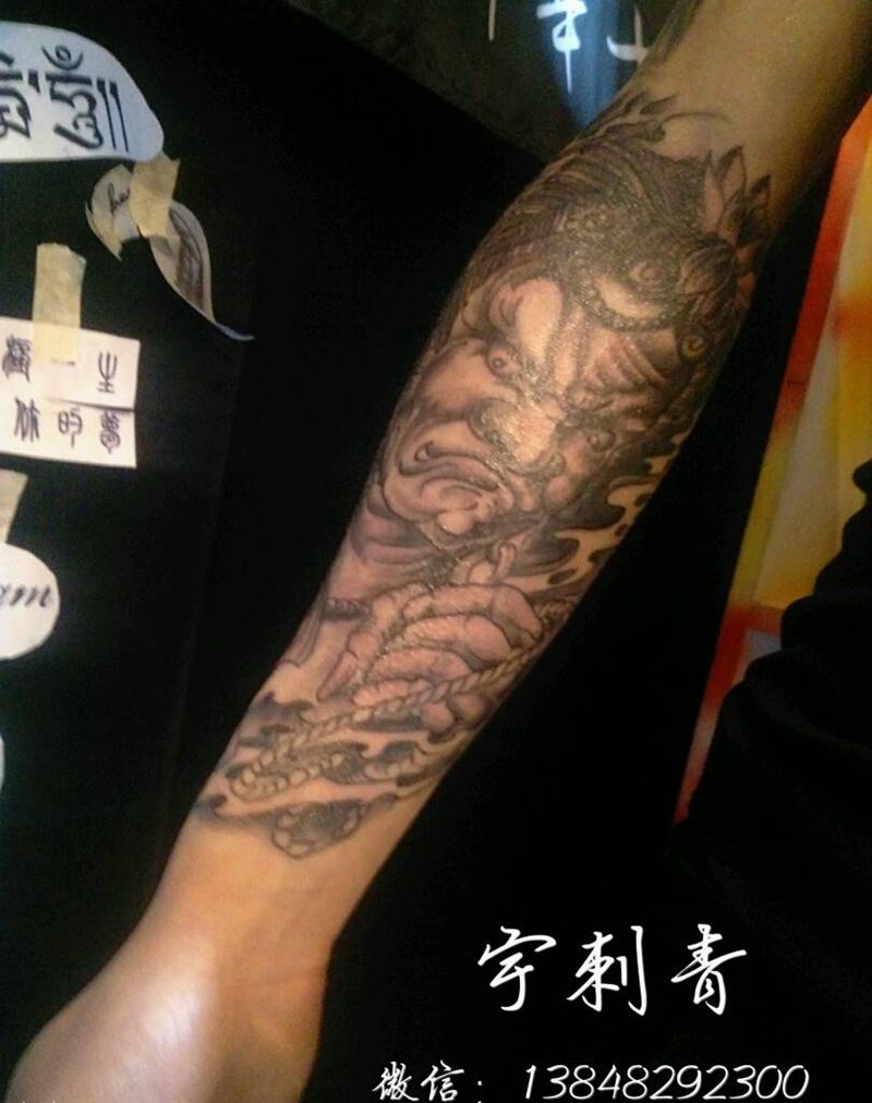 不动尊明王纹身图片_无痛无痛小臂成品纹身图案