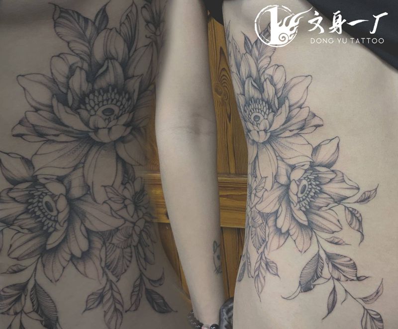 • 时尚性感的腹部莲花纹身图案