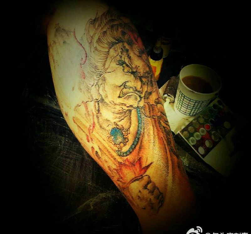 包小腿局部纹身图片_腿部脚部传统人物鬼神宗教原创成品手稿纹身图案