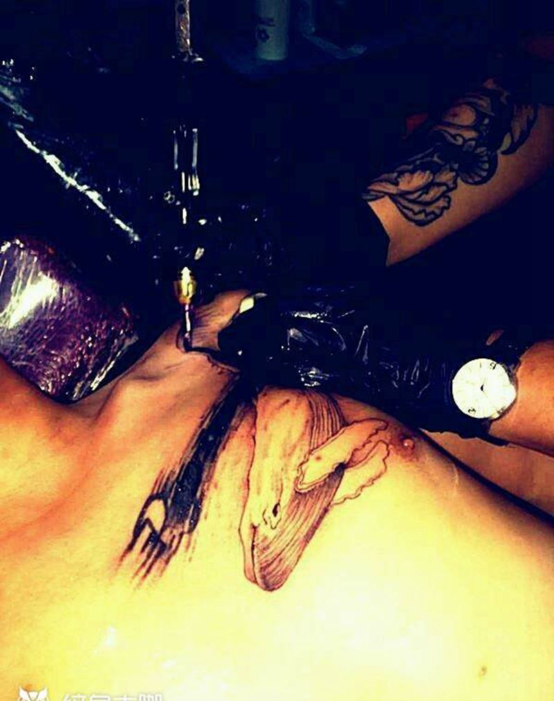 当前位置: 首页 >内蒙古包头市纹身店-文身一厂纹身图案>鲸――遮盖纹身图片_胸部欧美清新动物原创遮盖成品手稿纹身图案