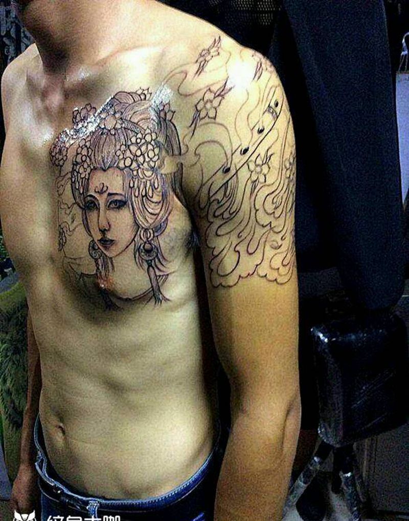 • 男性大花胸_42张优秀的男性大花胸纹身图案图片