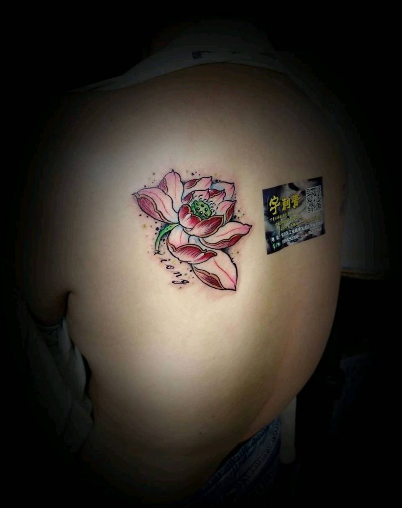 荷花纹身图片_传统原创宇刺青成品手稿纹身图案
