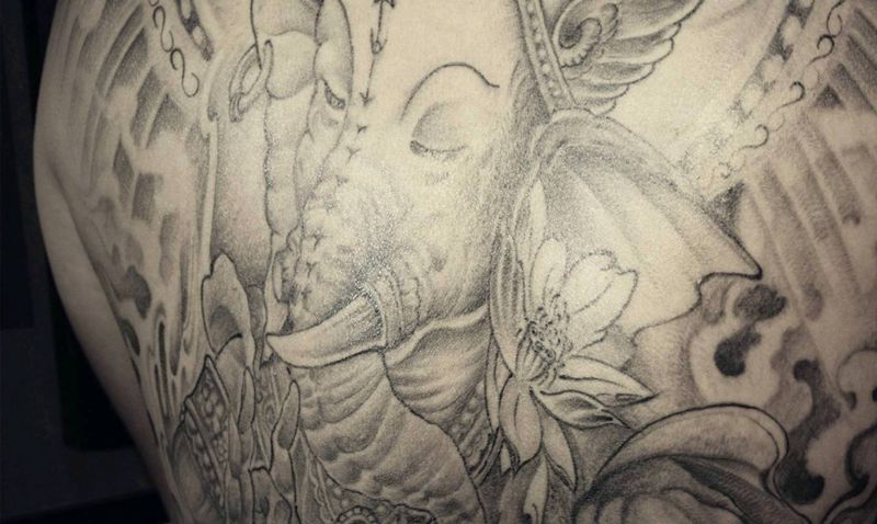 当前位置: 首页 >内蒙古包头市纹身店-文身一厂纹身图案>象神【未完成】纹身图片_宇刺青修改设计未完成手绘纹身图案