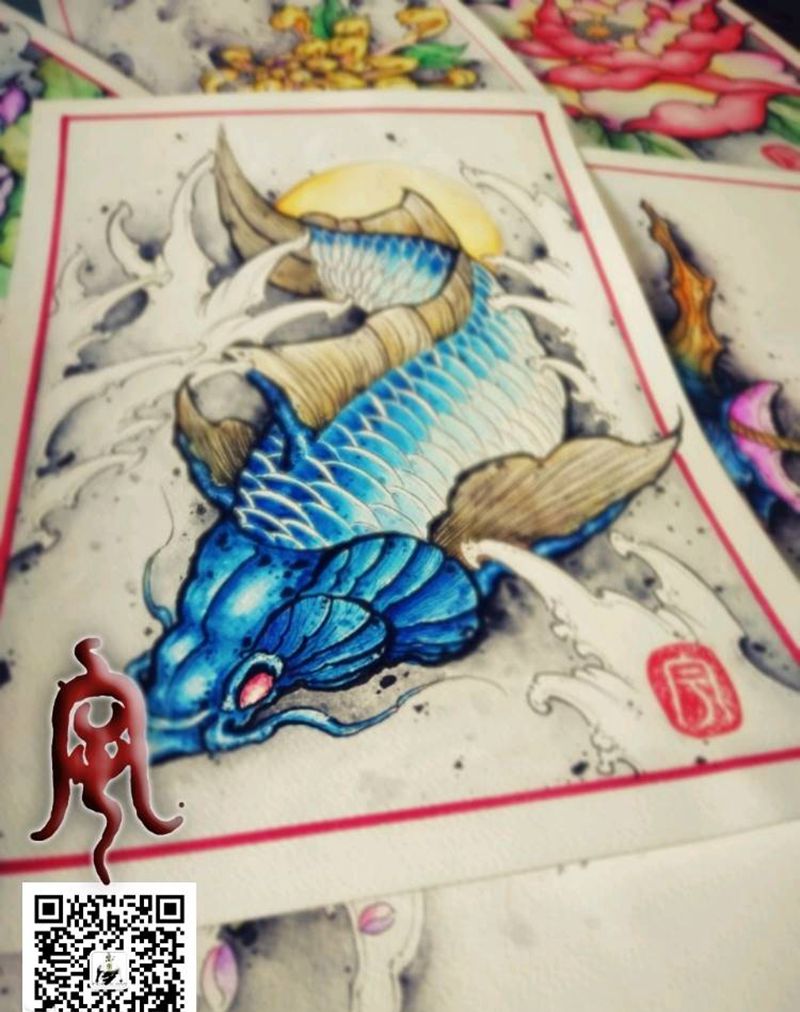 锦鲤纹身图片_原创宇刺青手稿纹身图案