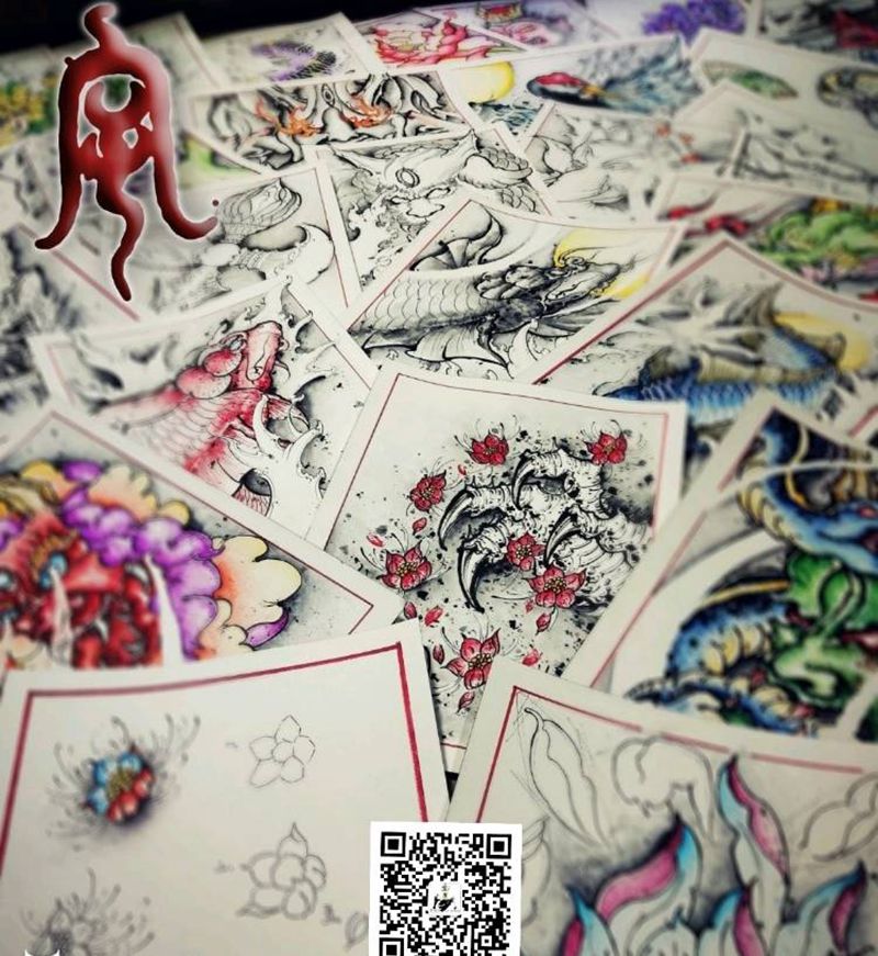 一组9张般若纹身手