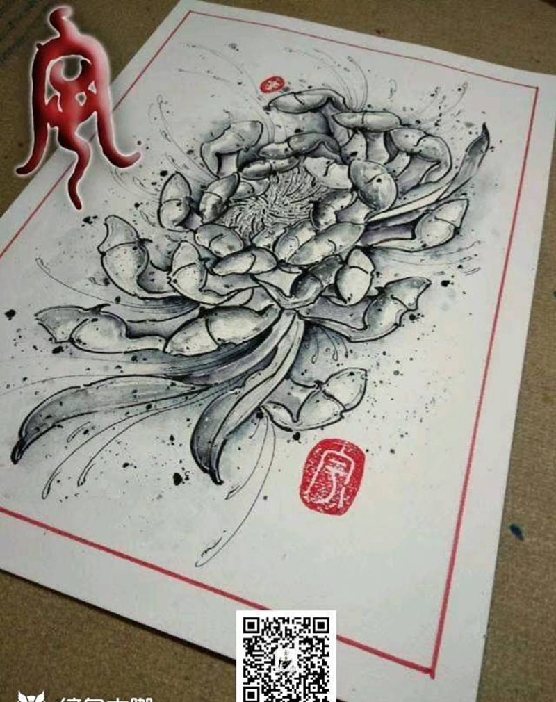 原创手稿,菊花纹身图片_传统植物原创宇刺青手稿纹身图案