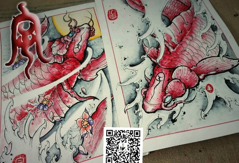 锦鲤纹身图片_原创宇刺青手稿纹身图案