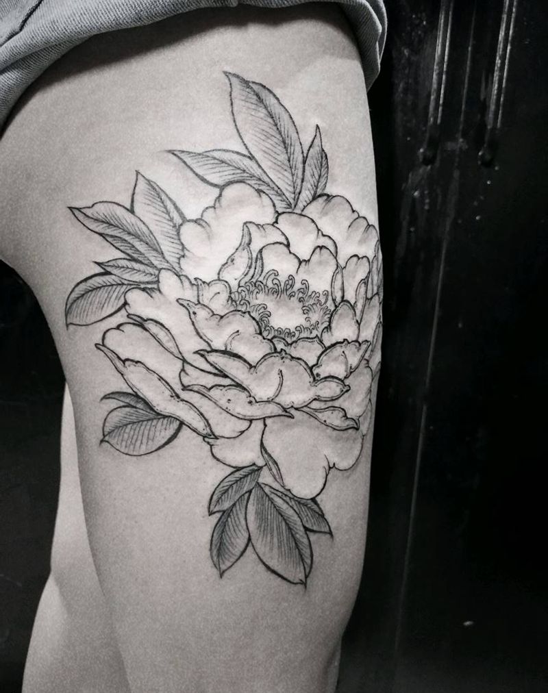 牡丹【线】纹身图片_传统植物原创宇刺青纹身图案