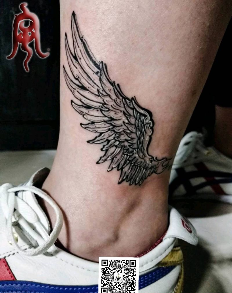 翅膀纹身图片_腿部传统清新动物原创宇刺青成品手稿纹身图案