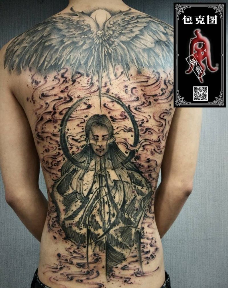 黑灰满背纹身图案