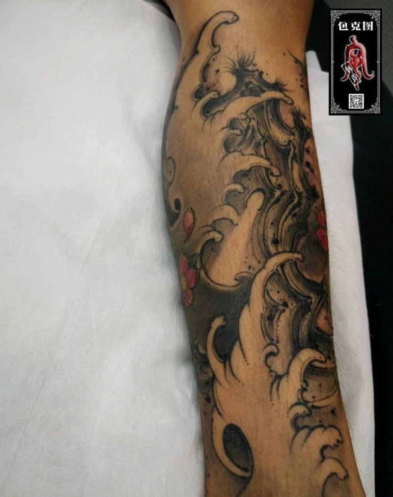 当前位置: 首页 >内蒙古包头市纹身店-文身一厂纹身图案>浪花包小腿纹身图片