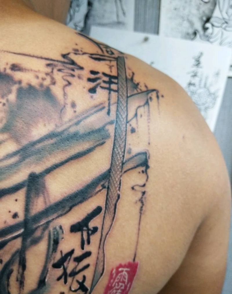 • 纹身吧推荐的披肩图腾半胛纹身图案作品展示