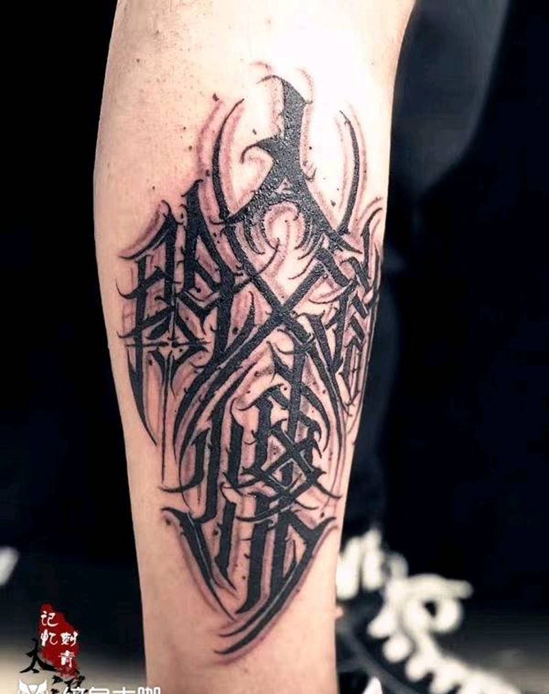 花体字 人间炼狱纹身图片_腿部纹身图案