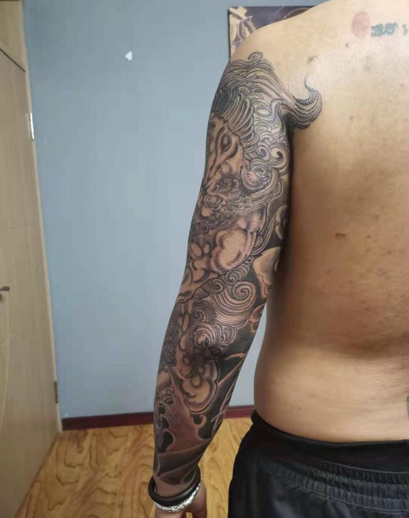 当前位置: 首页 >内蒙古包头市纹身店-包头金甲纹身纹身图案>唐狮般若花臂纹身图片_手臂新传统传统花臂纹身图案