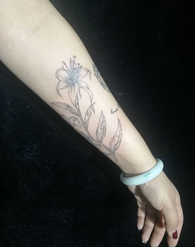 百合素花纹身图片_手臂纹身图案