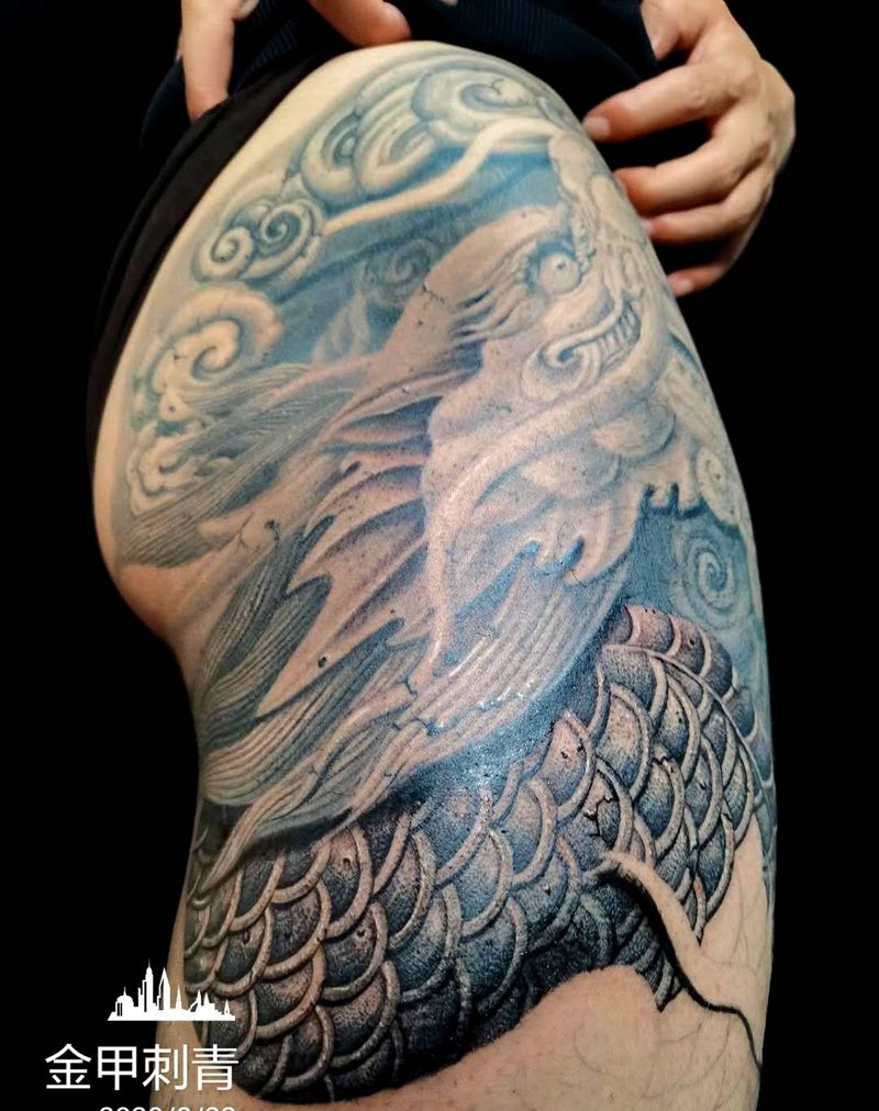 • T网红王老大花腿龙纹身图片_腿部新传统纹身图案