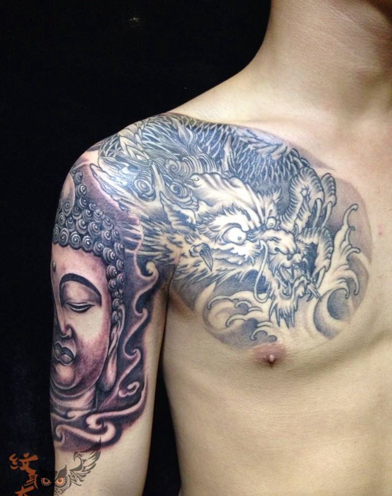 当前位置: 首页 >内蒙古包头市纹身店-包头金甲纹身纹身图案>龙佛半甲纹身图片