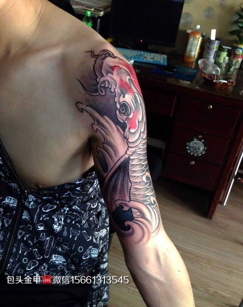 当前位置: 首页 >内蒙古包头市纹身店-包头金甲纹身纹身图案>包大臂锦鲤纹身图片