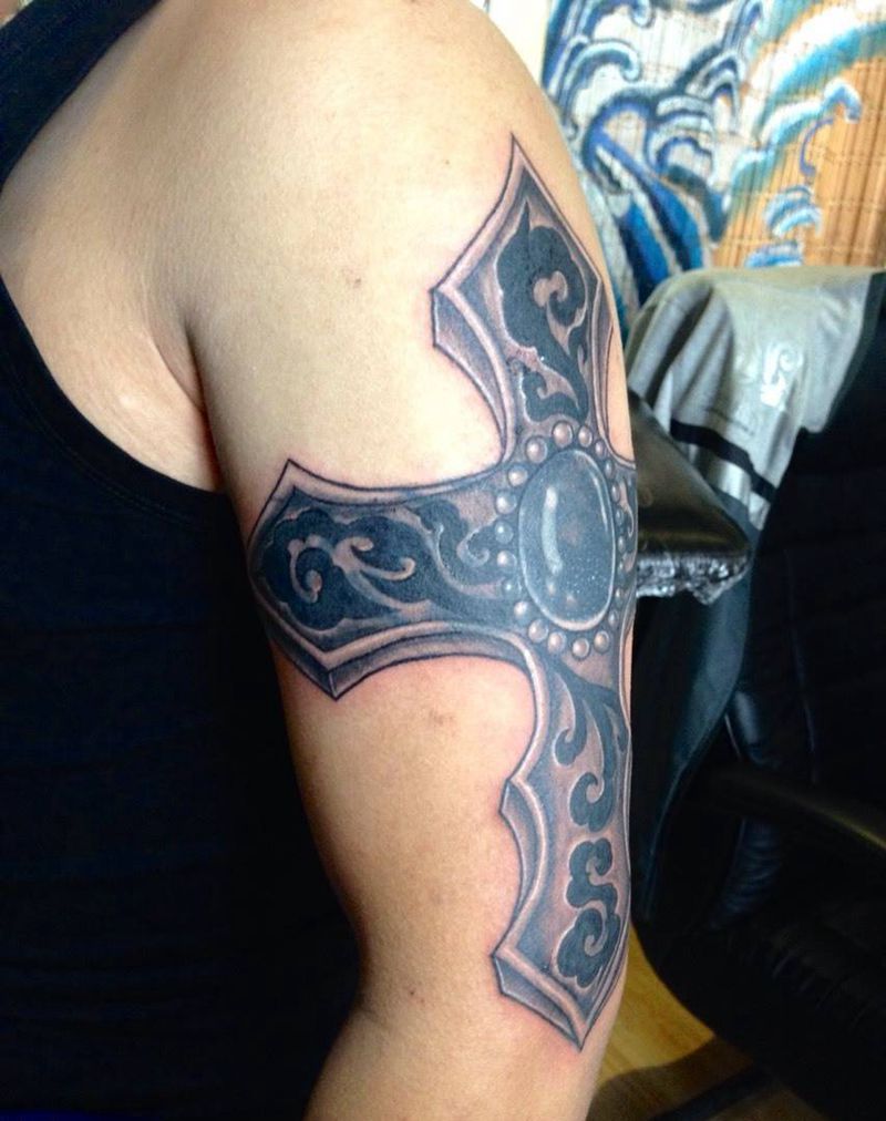 • H精美的十字架纹身图案 十字架刺青图片