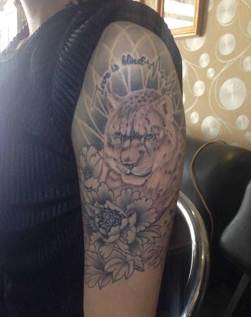当前位置: 首页 >内蒙古包头市纹身店-包头金甲纹身纹身图案>花豹牡丹纹身图片_成品手臂欧美写实清新动物纹身图案