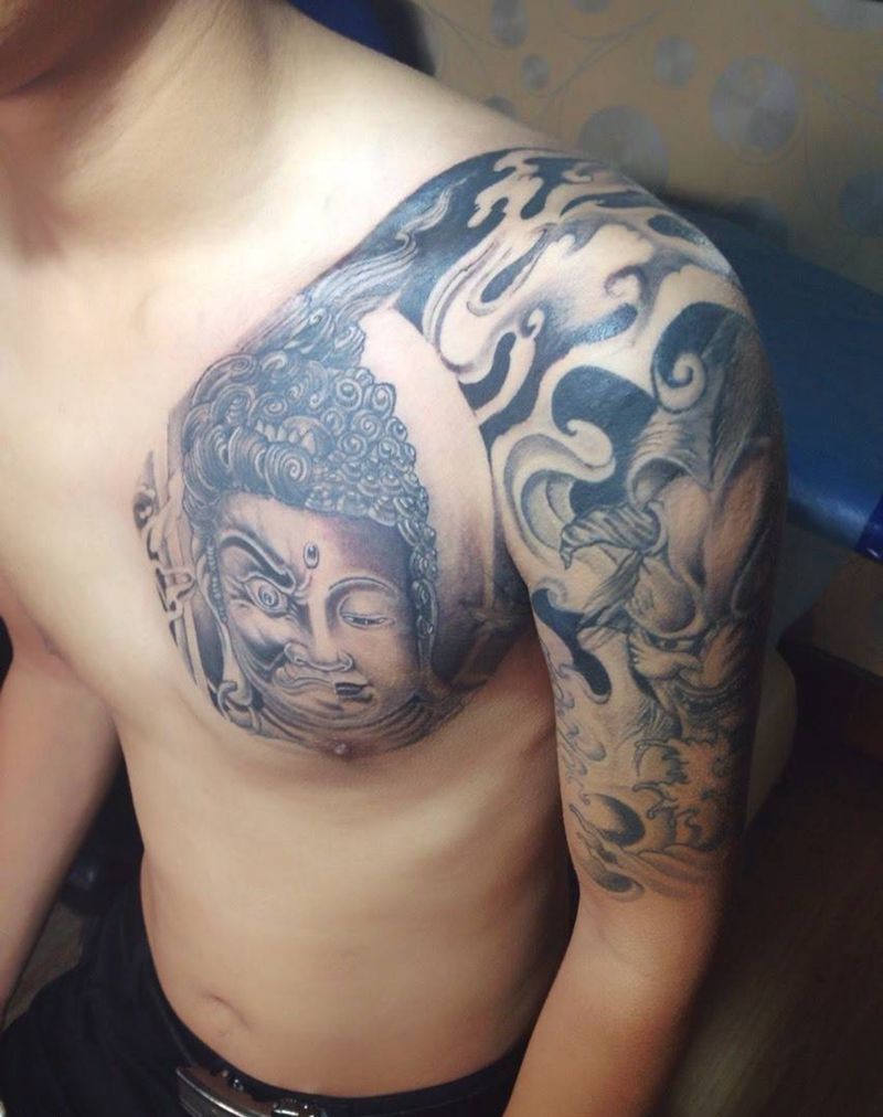 当前位置: 首页 >内蒙古包头市纹身店-包头金甲纹身纹身图案>不动尊般若半甲纹身图片_成品人物鬼神传统胸部肩部臀部纹身图案