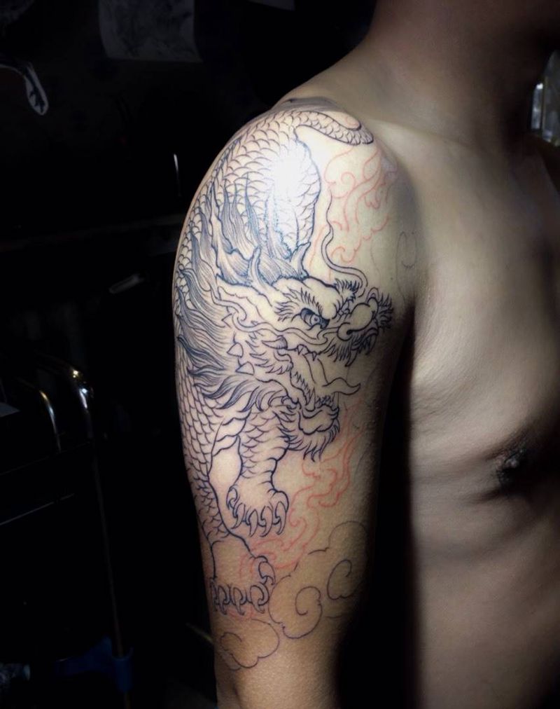 原创麒麟纹身图片_手稿肩部手臂传统习俗原创纹身图案