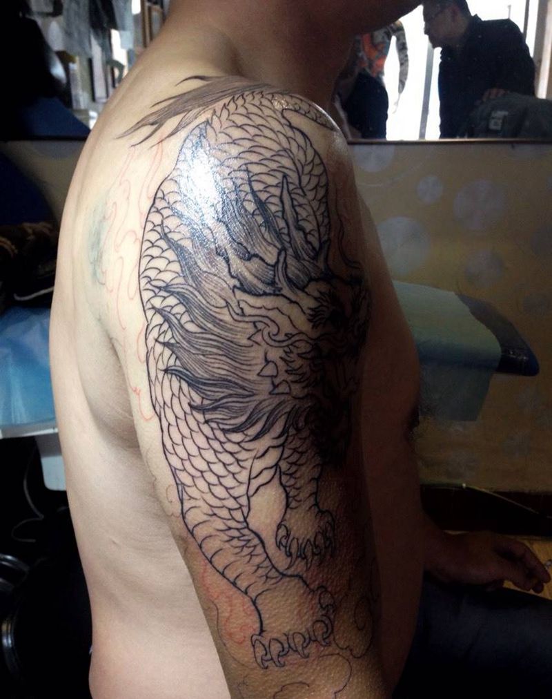 当前位置: 首页 >内蒙古包头市纹身店-包头金甲纹身纹身图案>原创麒麟纹身图片_手稿肩部手臂传统习俗原创纹身图案