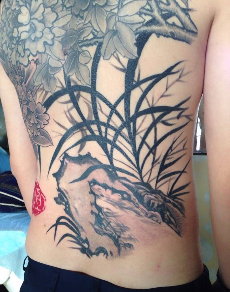 当前位置: 首页 >内蒙古包头市纹身店-包头金甲纹身纹身图案>原创牡丹兰草纹身图片