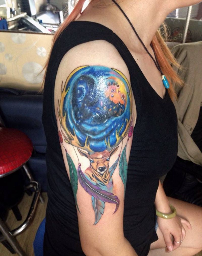 当前位置: 首页 >内蒙古包头市纹身店-包头金甲纹身纹身图案>星际捕梦网纹身图片_成品手臂清新纹身图案