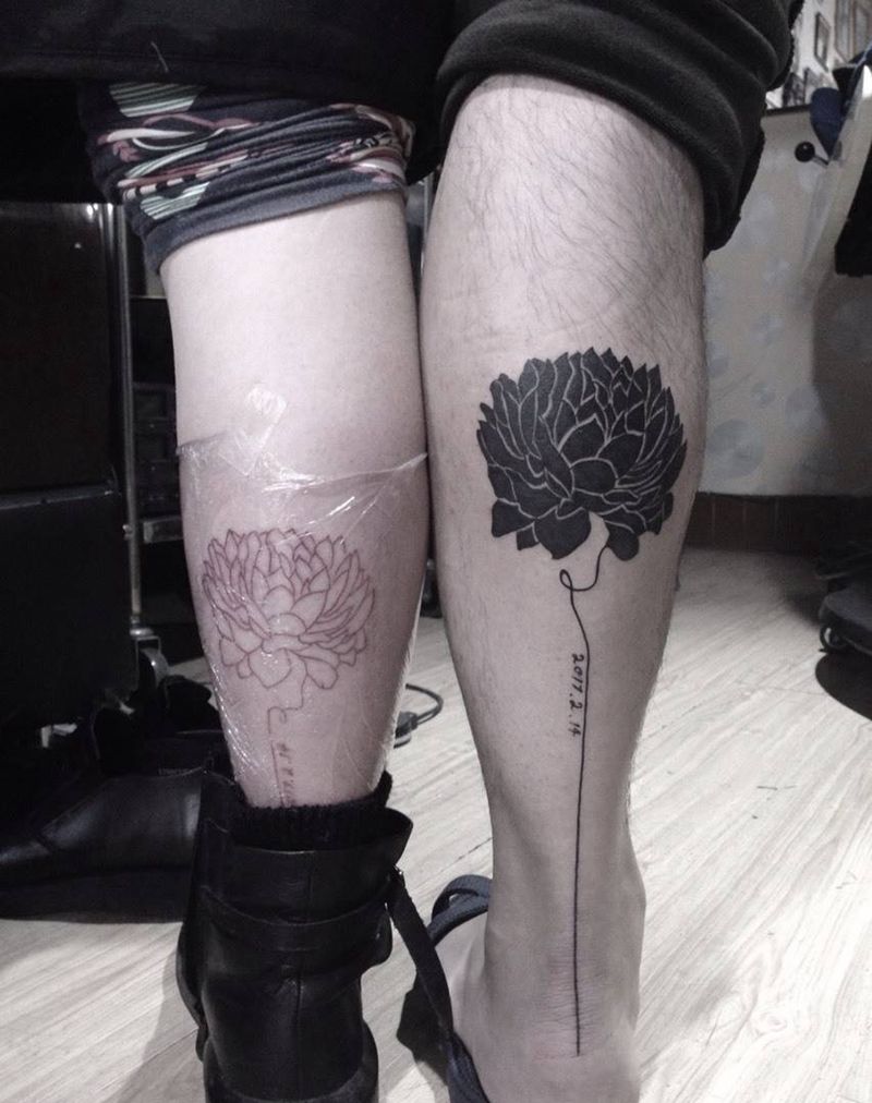 情侣纹身纹身图片_成品腿部清新植物纹身图案