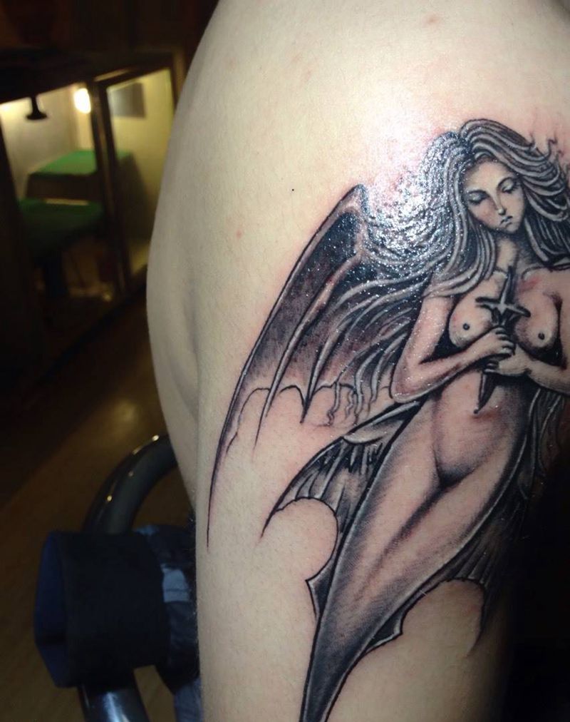 • 纹身吧推荐的披肩图腾半胛纹身图案作品展示