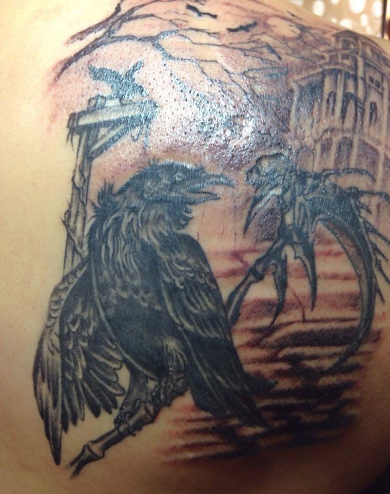 当前位置: 首页 >内蒙古包头市纹身店-包头金甲纹身纹身图案>乌鸦纹身图片_手稿肩部欧美原创纹身图案