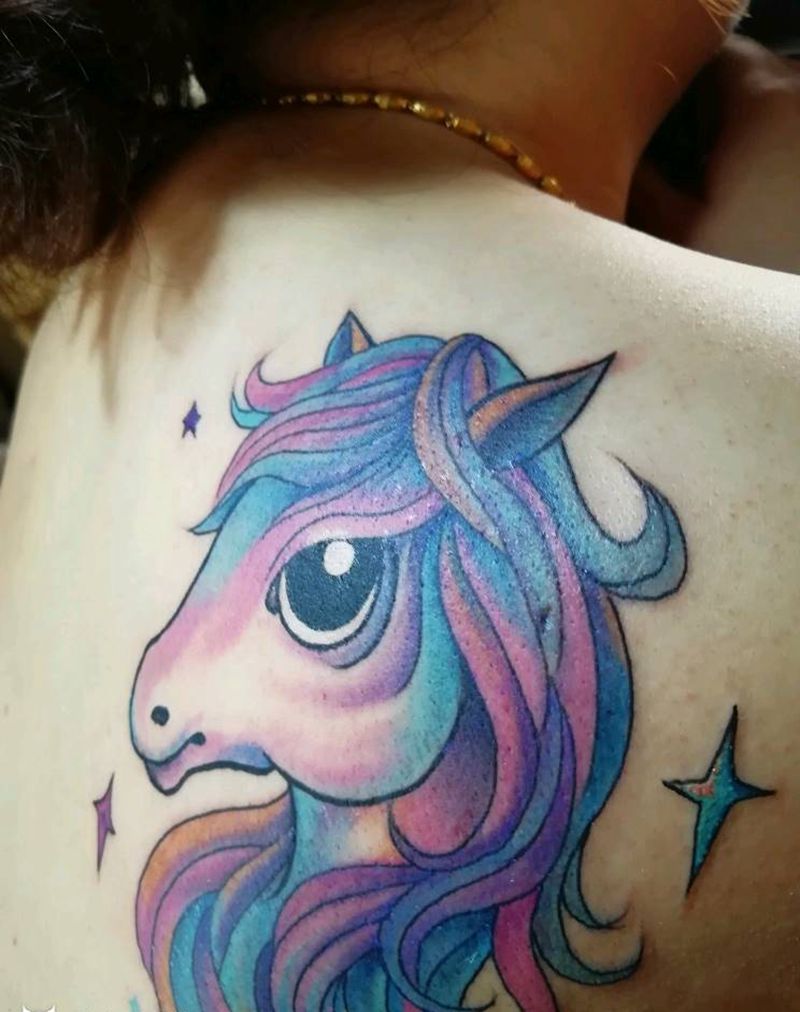 马纹身图片_肩部清新动物成品纹身图案
