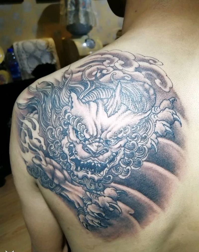 唐狮纹身图片_肩部胸部背部腿部传统纹身图案