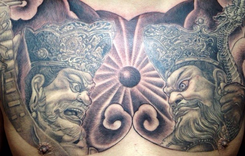 当前位置: 首页 >内蒙古包头市纹身店-包头金甲纹身纹身图案>原创四大金刚花胸纹身图片_胸部传统鬼神花胸纹身图案