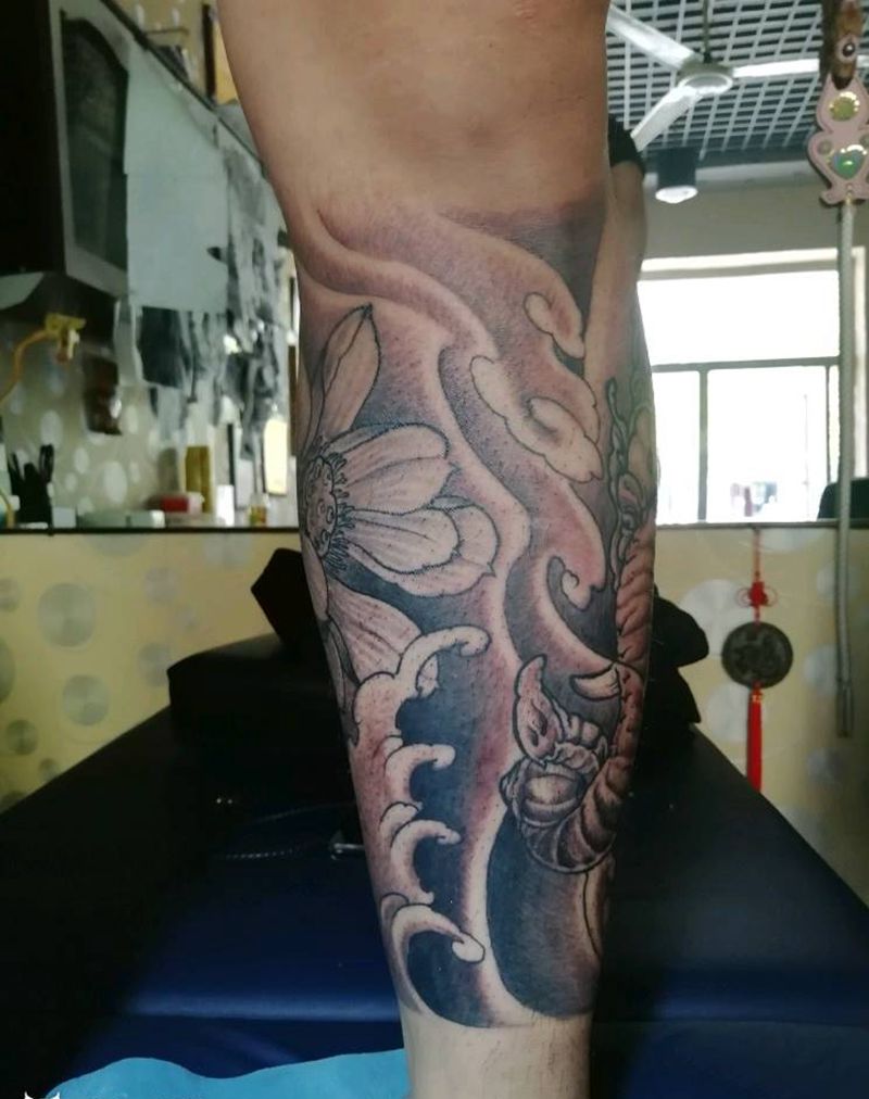 • T网红王老大花腿龙纹身图片_腿部新传统纹身图案