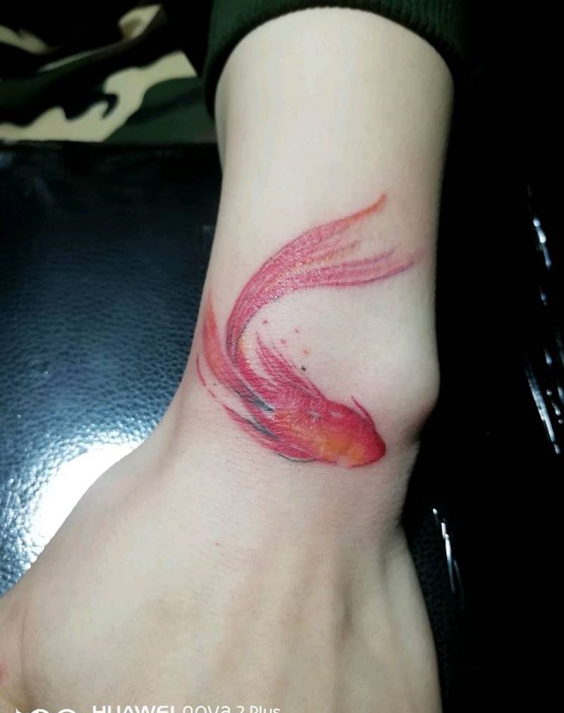 小金鱼遮疤纹身图片_手臂水彩动物纹身图案