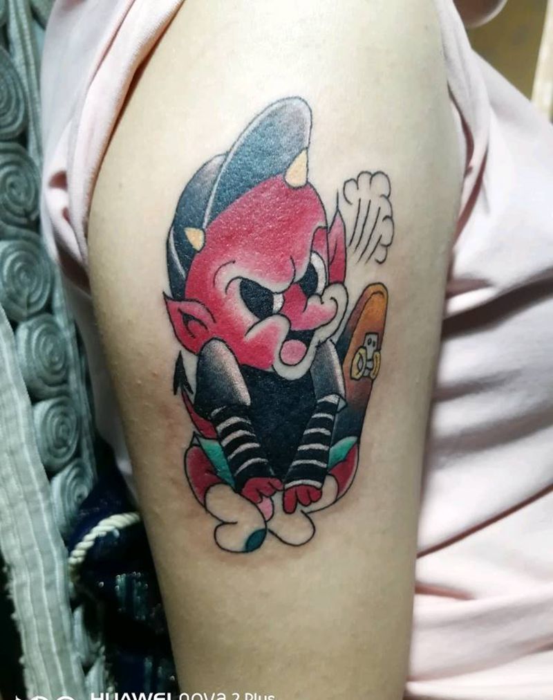 当前位置: 首页 >内蒙古包头市纹身店-包头金甲纹身纹身图案>小魔鬼纹身图片_手臂New School纹身图案