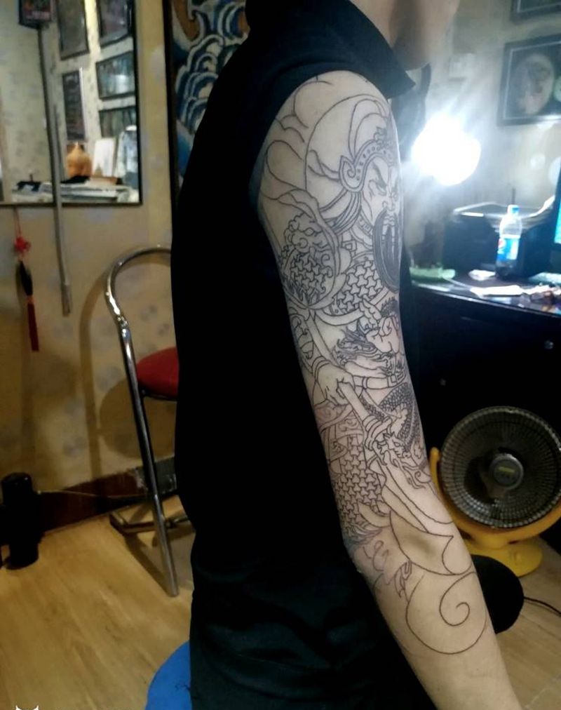 七分袖关公待续纹身图片_手臂花臂纹身图案