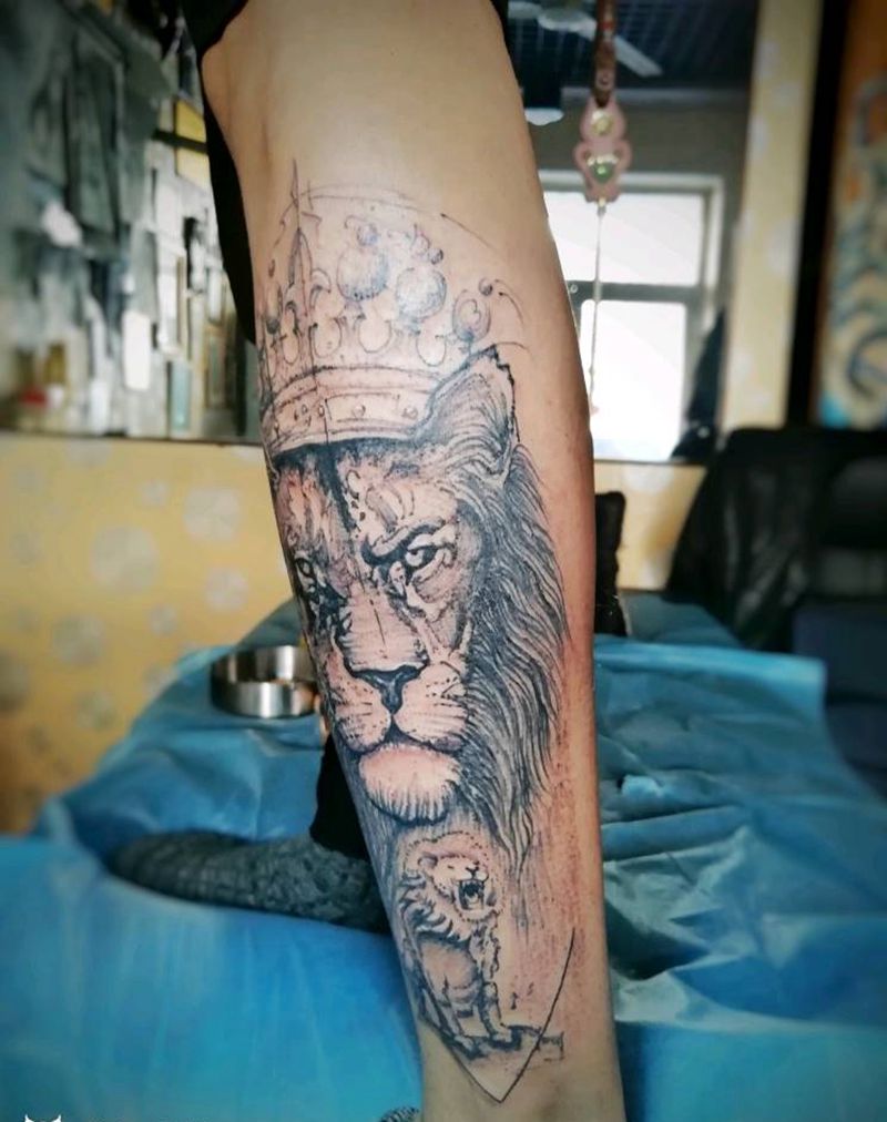 当前位置: 首页 >内蒙古包头市纹身店-包头金甲纹身纹身图案>狮子纹身图片_肩部手臂动物纹身图案