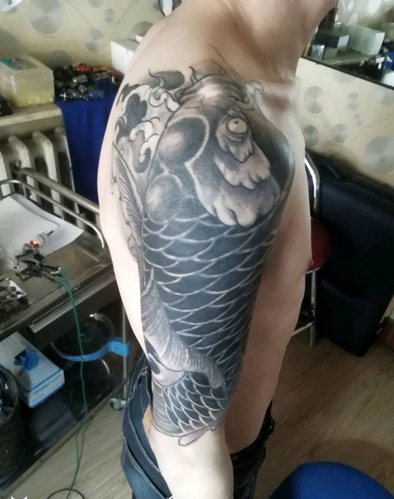 当前位置: 首页 >内蒙古包头市纹身店-包头金甲纹身纹身图案>强力遮盖鲤鱼纹身图片_传统动物手稿纹身图案