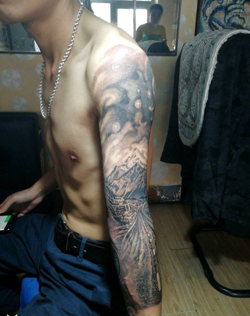 当前位置: 首页 >内蒙古包头市纹身店-包头金甲纹身纹身图案>修改纹身图片_肩部手臂写实原创花臂纹身图案