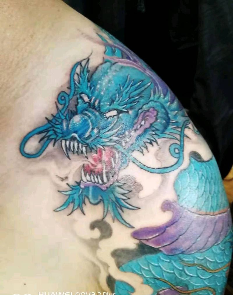 • T网红王老大花腿龙纹身图片_腿部新传统纹身图案