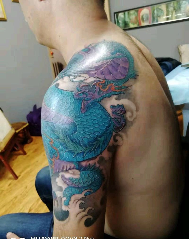 • T网红王老大花腿龙纹身图片_腿部新传统纹身图案