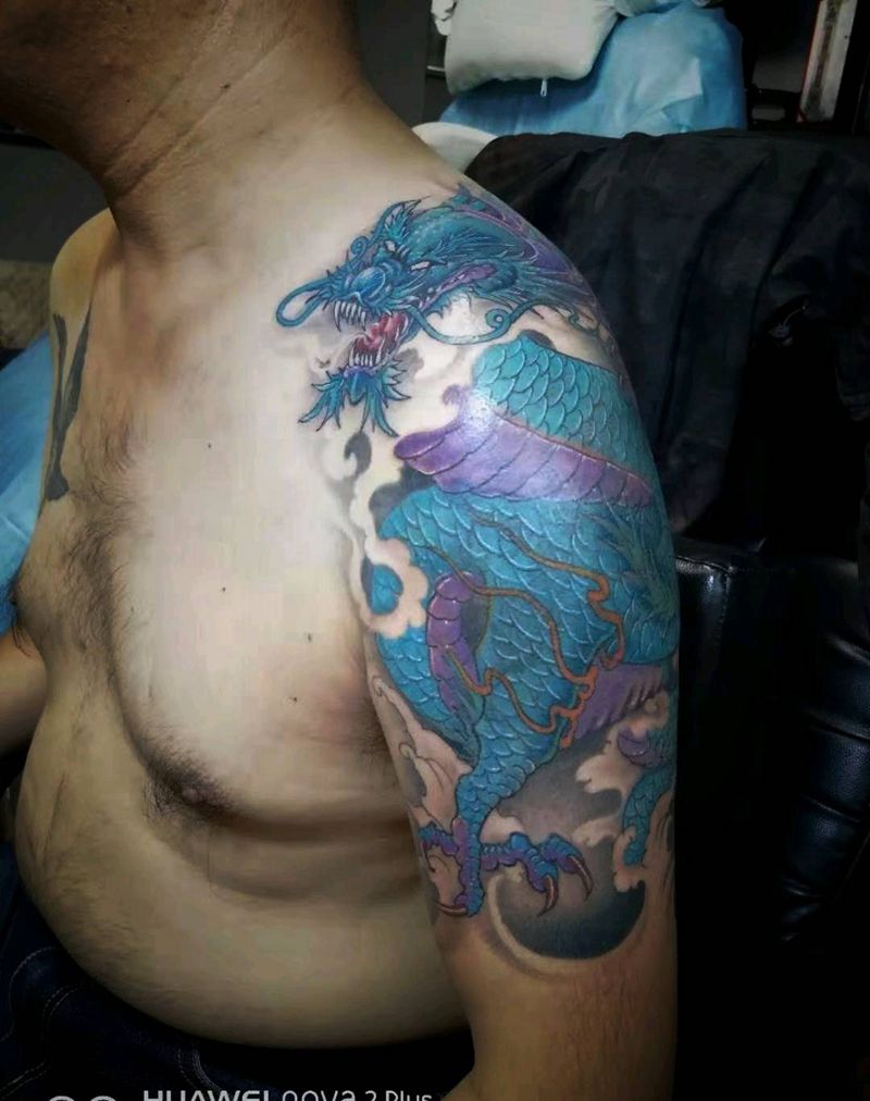• T网红王老大花腿龙纹身图片_腿部新传统纹身图案